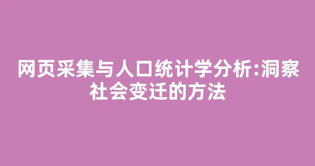 社会变迁是一个复杂而又深刻的主题,它涉及到人口结构、经济发展、文化传承等多个方面。在当今信息爆炸的时代,利用网页采集与人口统计学分析这一方法,可以更好地洞察社会的变迁和趋势。本文将详细介绍这一方法的应用及其意义。